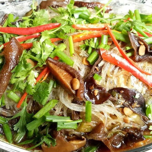 Cá tai tượng hấp bún nấm